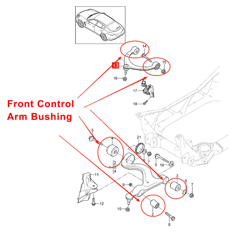 Porsche Panamera 2014–2016 Предна горна и долна втулка на носача